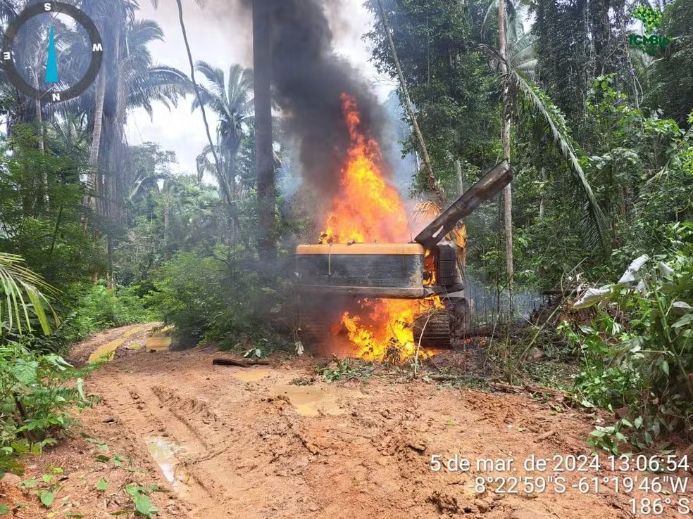Os materiais destruídos pela PF somam R$ 7,5 milhões de prejuízos aos criminosos. Durante a operação, que ocorreu nos dias 5 e 6 de março, a PF também destruiu seis barrancos utilizados pelos garimpeiros, apreendeu 10 mil litros de óleo diesel e uma motocicleta.Imagens divulgadas pela PF mostram os agentes queimando as escavadeiras e destruindo as áreas de exploração ilegal.