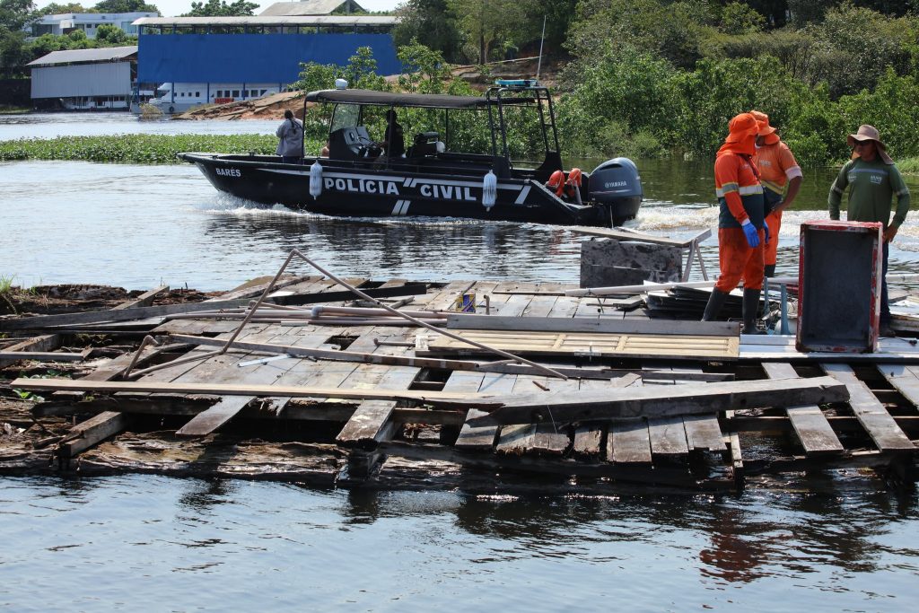 Em cumprimento à decisão judicial, a Secretaria Municipal de Meio Ambiente, Sustentabilidade e Mudança do Clima (Semmasclima) iniciou, nesta terça-feira, 26/3, a operação de retirada dos flutuantes irregulares localizados no Tarumã-Açu, em Manaus. Conforme liminar vigente, a nova determinação é para retirada apenas de flutuantes previamente identificados como abandonados.