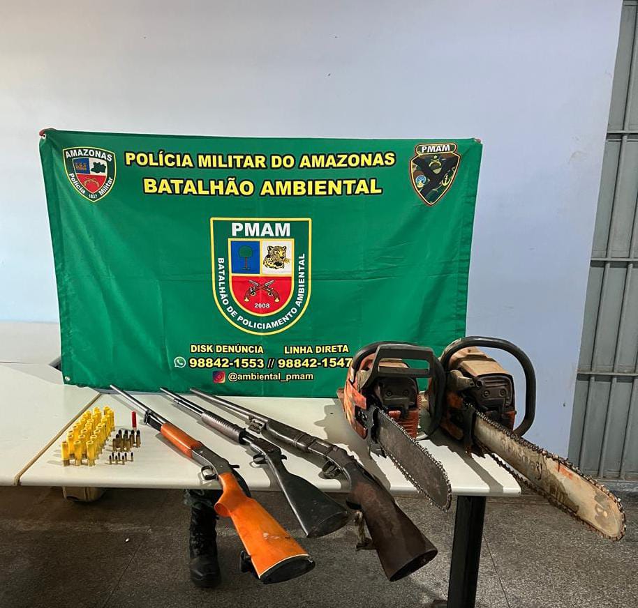 A Polícia Militar (PMAM), por meio do Batalhão de Policiamento Ambiental (BPAmb), apreendeu, na quarta-feira, 19/06, em duas diferentes ações, quatro armas de fogo, munições e duas motosserras, no ramal Bela Vista, em Humaitá (a 590 quilômetros de Manaus). As apreensões ocorreram no escopo da operação Tamoitiatá, ação de combate aos crimes ambientais, desencadeada no sul do Amazonas.