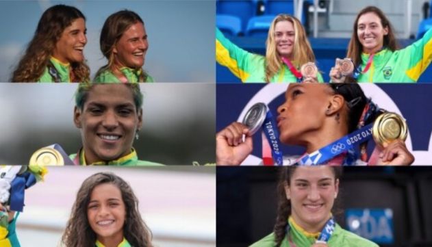 As atletas olímpicas do Brasil conquistaram até aqui oito medalhas nos Jogos de Tóquio, o melhor desempenho do país na história. Rayssa Leal (skate), Rebeca Andrade (duas, ginástica), Mayra Aguiar (judô), Bia Ferreira (boxe), Ana Marcela Cunha (maratona aquática), Martine Grael/Kahena Kunze (vela) e a dupla de tênis Luisa Stefani e Laura Pigossi. A boxeadora Bia Ferreira é a única que não sabe a cor de sua medalha porque ainda vai disputar a semifinal, mas já tem o bronze garantido.
