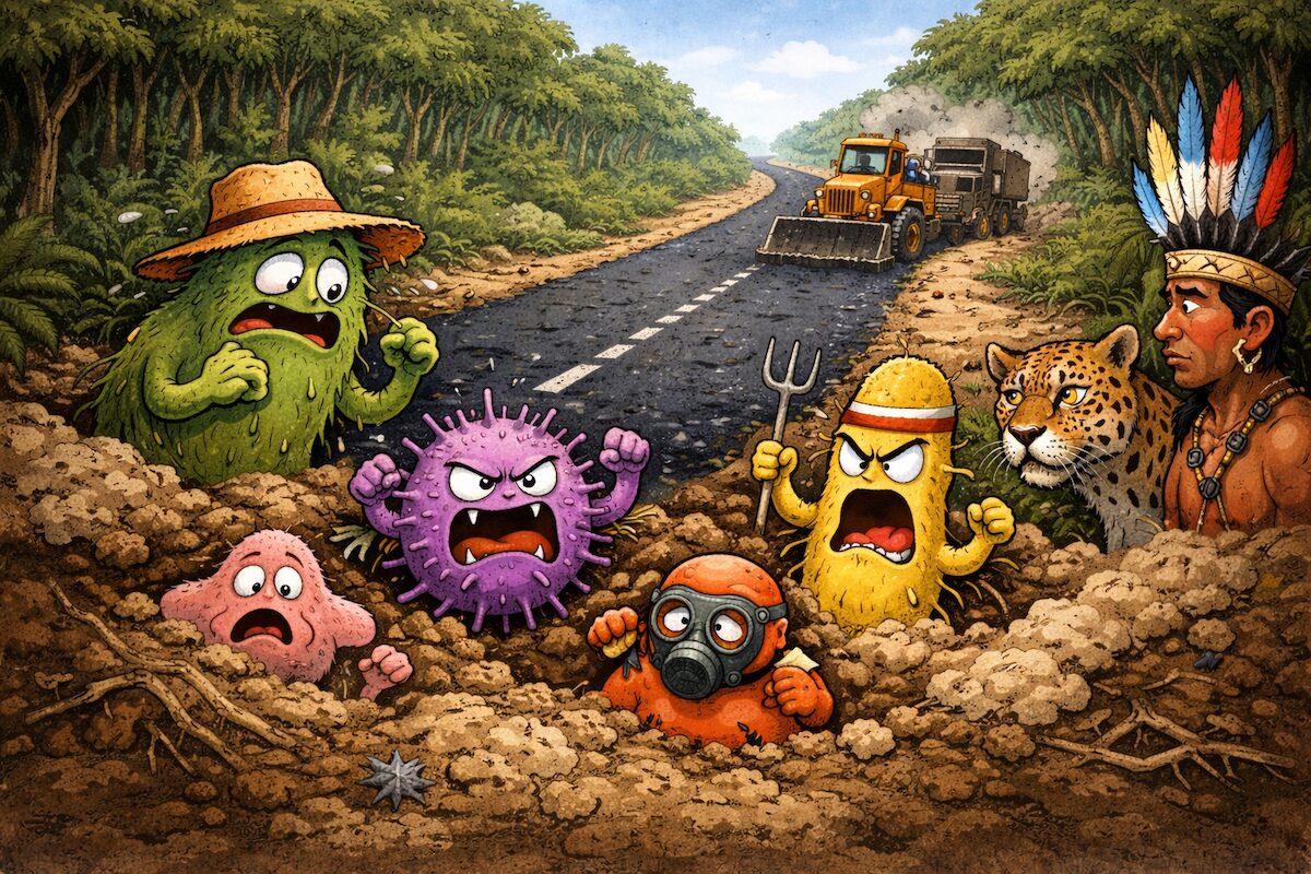 Entre a sátira e a crítica científica, o artigo questiona o alarmismo ambiental que transforma a pavimentação da BR-319 em ameaça microbiológica, ignorando evidências históricas e o debate real sobre desenvolvimento e Amazônia.