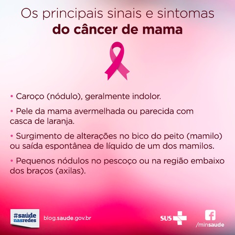 A campanha deste ano ressalta a necessidade de não adiar as consultas; fazer os exames preventivos; manter hábitos saudáveis, com destaque para não fumar. Maltoni reafirmou a importância de as mulheres prestarem atenção ao aparecimento de eventuais sinais e sintomas de problemas na mama, como aparecimento de nódulos, secreção anormal pelo mamilo que não seja leite, alterações ou retração na pele da mama. “Enfim, sinais e sintomas que chamam a atenção que alguma coisa não está bem”, reforçou Maltoni.