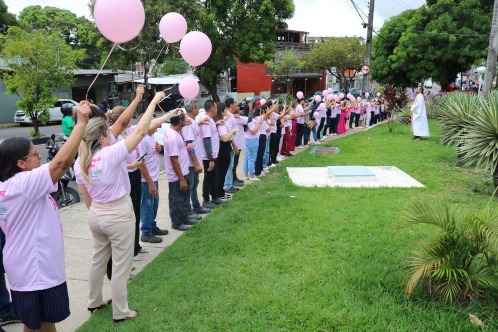 Servidores, pacientes e acompanhantes da FCecon e voluntárias das Organizações Não-Governamentais (ONGs) que atuam na causa câncer se emocionaram, cantaram e lançaram balões na cor rosa ao céu, como símbolo da esperança da cura.