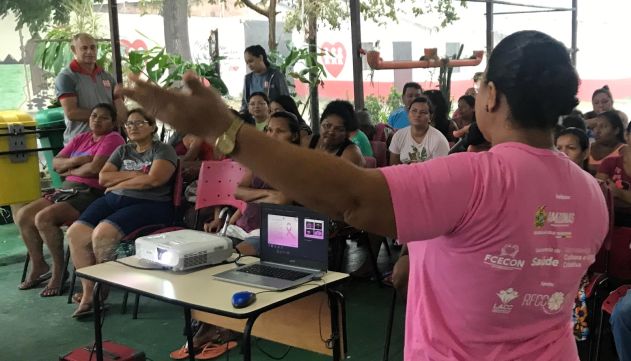 Fortalecendo as ações da campanha Outubro Rosa, a Fundação de Vigilância em Saúde – Dra. Rosemary Costa Pinto (FVS-RCP), vinculada à Secretaria de Estado e Saúde do Amazonas (SES-AM), realizou, nesta segunda-feira, 16/10, uma palestra sobre prevenção ao câncer de mama para mulheres na Fundação Fé e Alegria, no bairro Grande Vitória, na zona leste de Manaus.