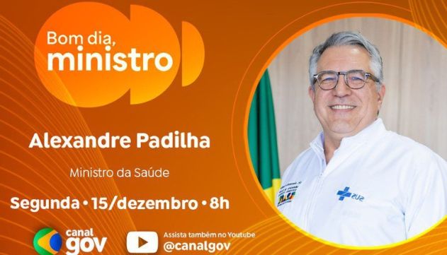 O ministro Alexandre Padilha (Saúde) será entrevistado por profissionais de imprensa de várias regiões do país no “Bom Dia, Ministro” desta segunda-feira, 15 de dezembro. Durante o programa, a partir das 8h, o ministro vai abordar alguns dos principais temas da pasta, como o Agora Tem Especialistas e o início da campanha nacional de vacinação contra o vírus sincicial respiratório (VSR).