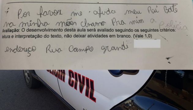 Uma prova habitual se transformou em pedido de socorro no Vale do Anari, cidade com pouco mais de 10 mil habitantes no interior de Rondônia. Uma menina de 13 anos escreveu no teste: "Por favor me ajuda meu pai bate na minha mãe chama pra mim a polícia".