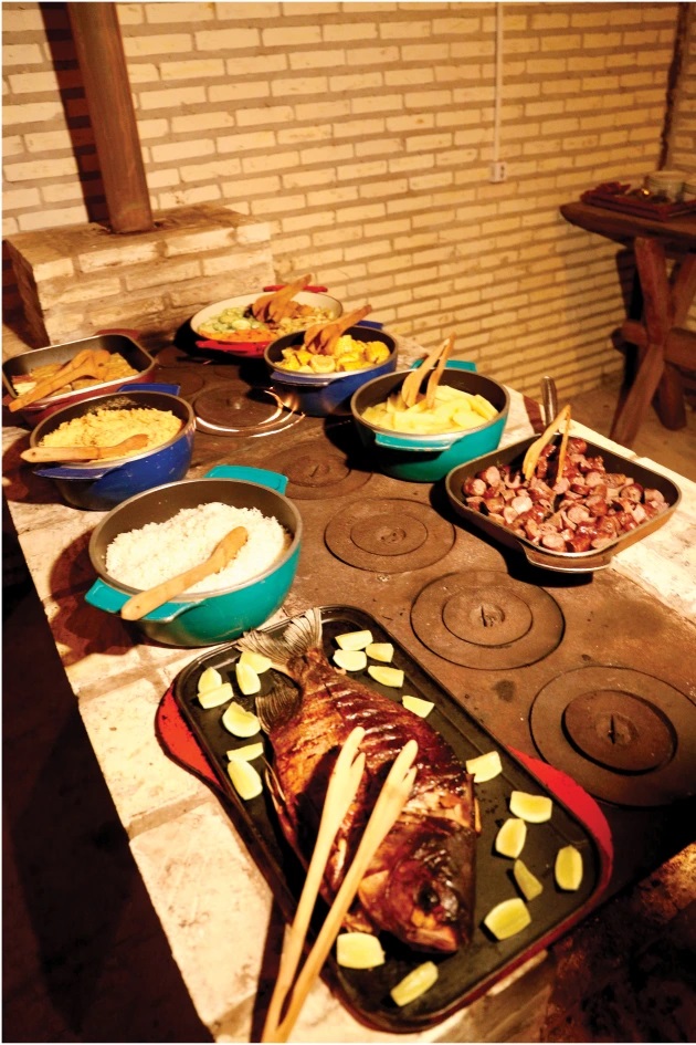 De volta às acomodações, ainda em êxtase, um banho e mais uma aventura: degustar os pratos típicos da região preparados pelo chef Felipe Feiteiro e pela confeiteira Patrícia Lescano. Pense em suco de guavira, com bolo de bocaiuva e salada de umbigo de bananeira servidos ao lado de pães de queijo e curau feitos com a bocaiúva, fruta típica da região, conhecida também como chiclete pantaneiro.