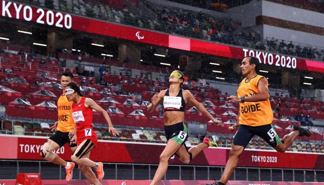O Brasil fez dobradinha no pódio da corrida de 200 metros rasos, classe T11, na Paralimpíada de Tóquio. Thalita Simplício quase levou o ouro, mas acabou com a prata por uma diferença de milésimos.