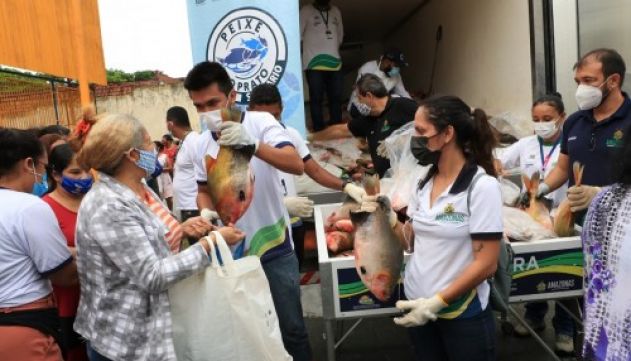 Nesta 7ª edição foram entregues 4 toneladas de tambaqui roelo e 1,2 tonelada de farinha no bairro Mutirão, zona norte da capital