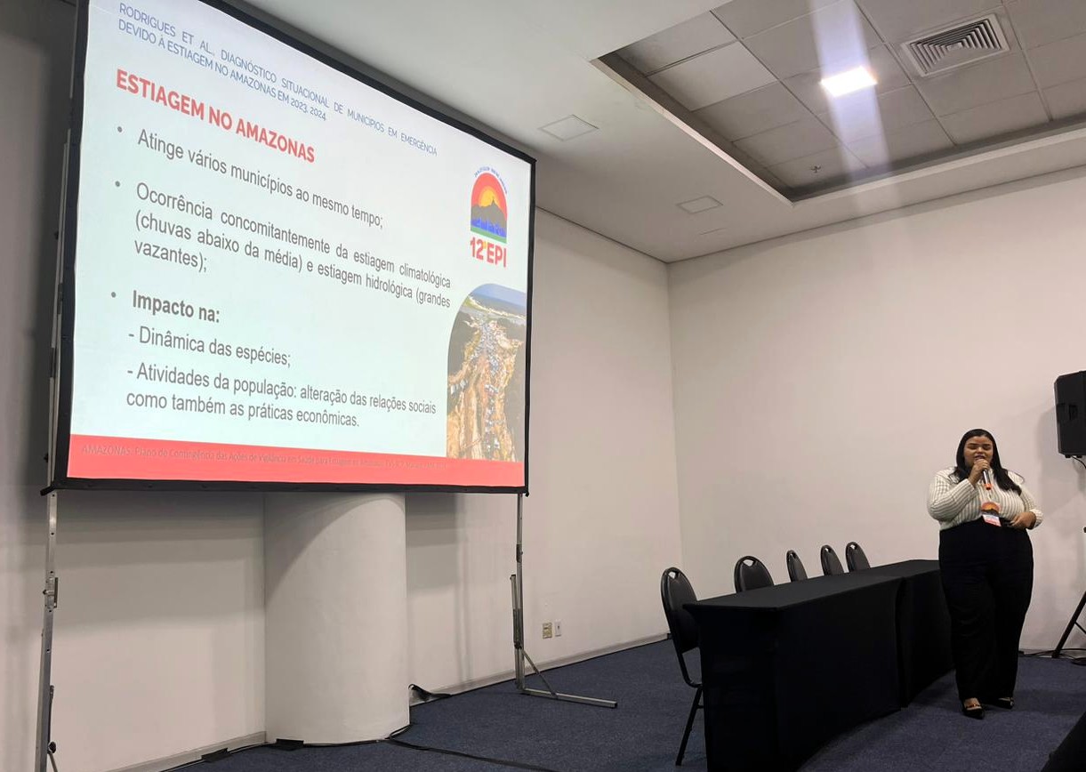 No campo das mudanças climáticas, foi apresentado o "Diagnóstico situacional de municípios em emergência devido à estiagem no Amazonas em 2023", que utilizou a plataforma RedCap, de dados de pesquisas, para coleta das informações durante a estiagem. “A plataforma possibilita o preenchimento on-line e offline de formulários, um auxílio em situações de oscilação de internet comum no interior do Amazonas”, disse Maria Gabriela Rodrigues, autora responsável pela apresentação do trabalho.