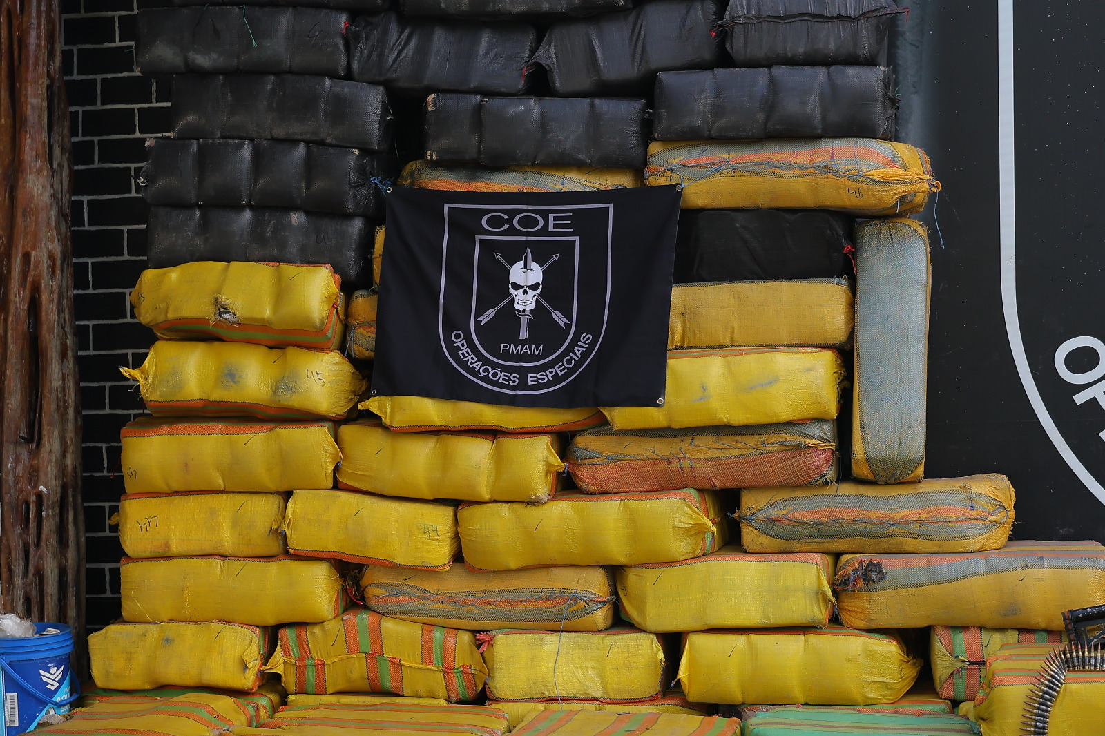 A Polícia Militar do Amazonas (PMAM) registrou a maior apreensão de drogas da história do estado em uma única ocorrência. Equipes da Companhia de Operações Especiais (COE) apreenderam 6,5 toneladas de entorpecentes, entre maconha skunk e cocaína, na noite de domingo, 1º/06, próximo ao município de Manacapuru. O governador Wilson Lima acompanhou, na segunda-feira, 02/06, a apresentação do material interceptado pelas Forças de Segurança.