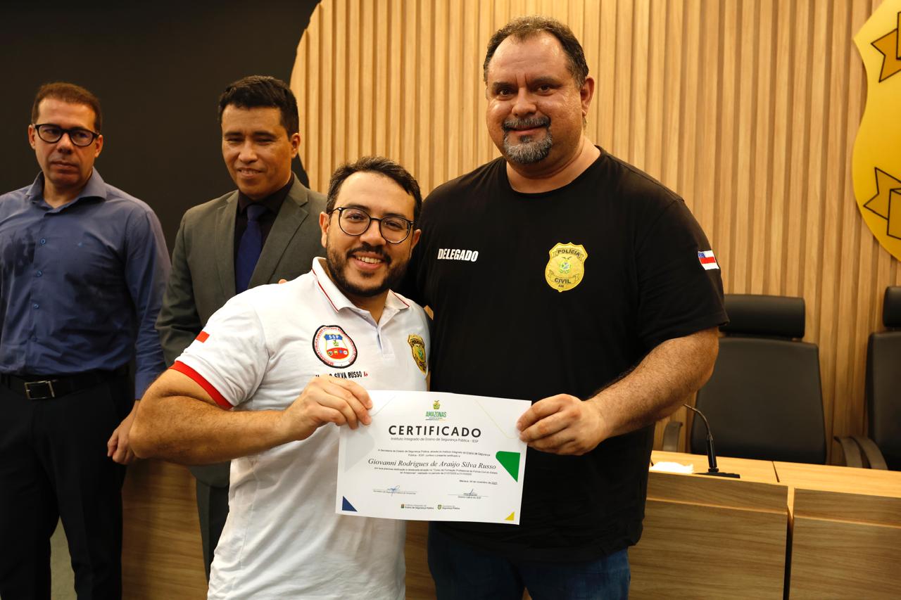 A Polícia Civil do Amazonas (PC-AM) realizou a solenidade de formatura do Curso de Formação Profissional de quatro novos delegados de polícia, nesta terça-feira, 04/11, no auditório José Elcy Barroso Braga, na sede da Delegacia Geral (DG).
