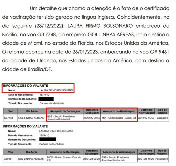 De acordo com os documentos, a PF identificou um esquema para fraudar dados de vacinação liderado pelo ex-ajudante de ordens de Bolsonaro, tenente-coronel Mauro Cid, para beneficar o ex-presidente, sua filha e ao menos outros dois assessores próximos do ex-mandatário — Max Guilherme e Sergio Cordeiro — antes de o grupo viajar aos EUA em dezembro passado.