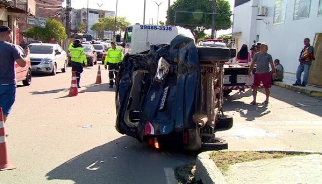 Carro capota após colisão com ''amarelinho'', em Manaus; seis pessoas ficaram feridas