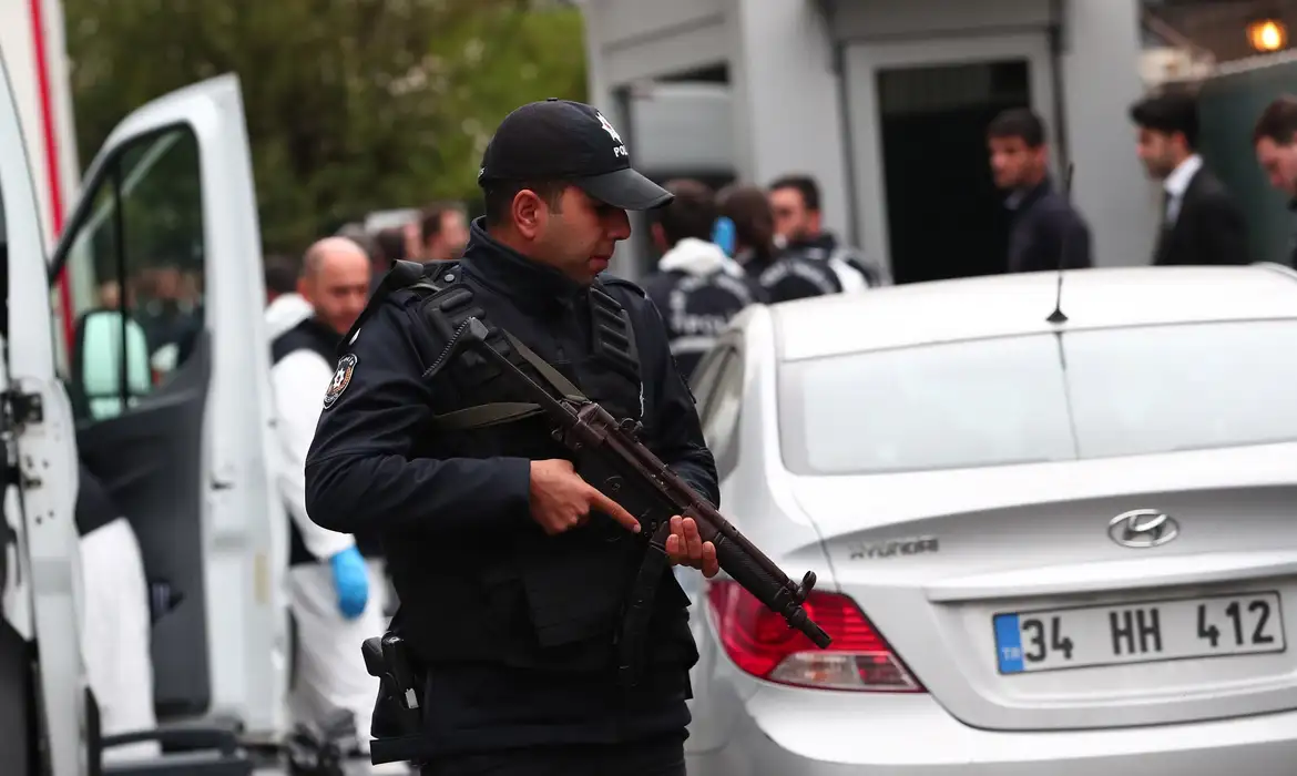 Imagens feitas por veículos turcos, cuja autenticidade a AFP não pôde verificar, mostravam um homem com o rosto parcialmente coberto por um lenço palestino, com explosivos presos com fita adesiva no corpo e segurando o que parecia ser uma pequena pistola na mão direita. Uma parede atrás dele, debaixo de duas bandeiras – uma turca e outra palestina – exibia a inscrição “Por Gaza” em vermelho.