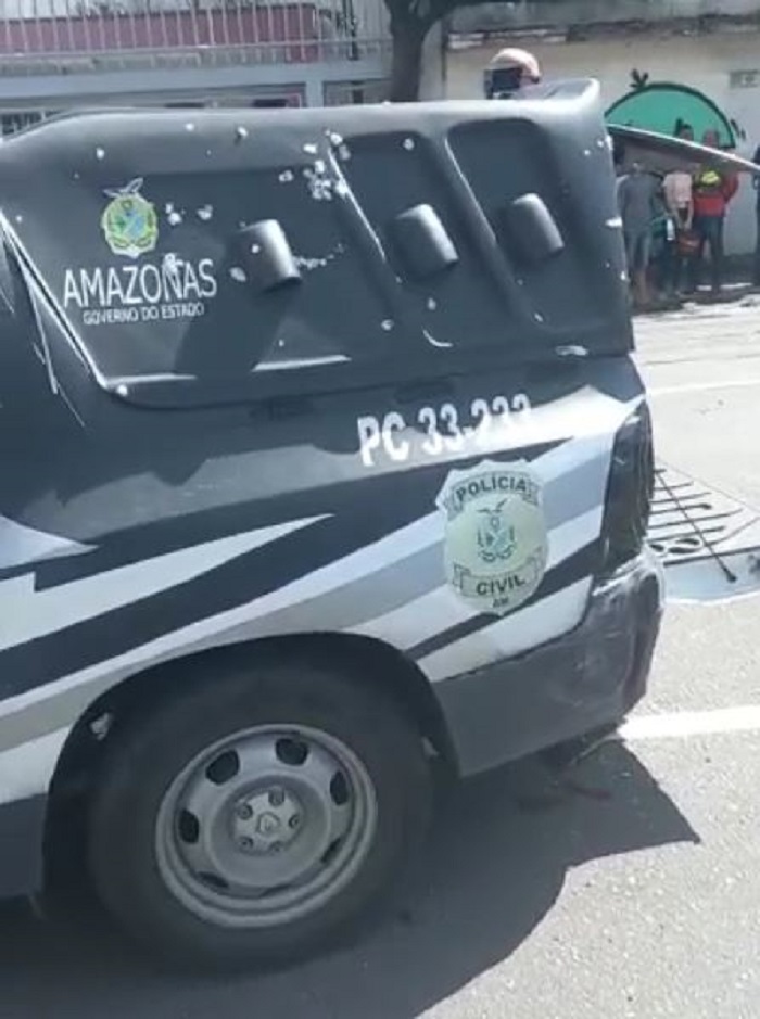 A policial foi ferida no ataque do grupo criminoso que fuzilou uma viatura durante a tarde desta quinta-feira, 5, na frente do no Fórum Ministro Henoch Reis, situado na Zona Centro-Oeste de Manaus.