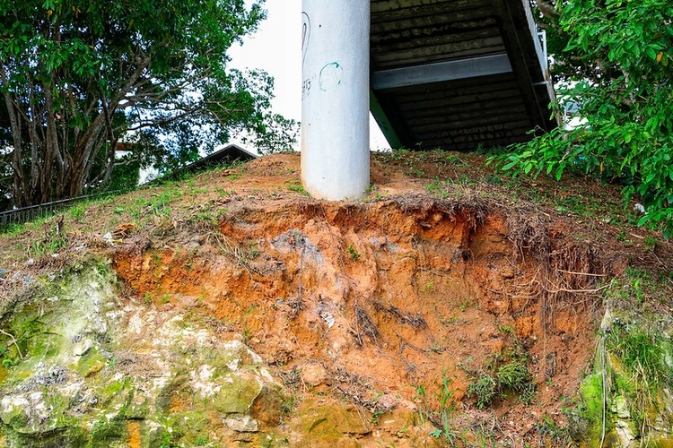 Em razão de uma erosão localizada na base de um dos mirantes, será construído um rip-rap para fazer a contenção do desbarrancamento. Com a subida das águas do rio alcançando o terreno, a erosão ocorreu, afetando o talude, que terá recomposição para não afetar a estrutura do mirante.
