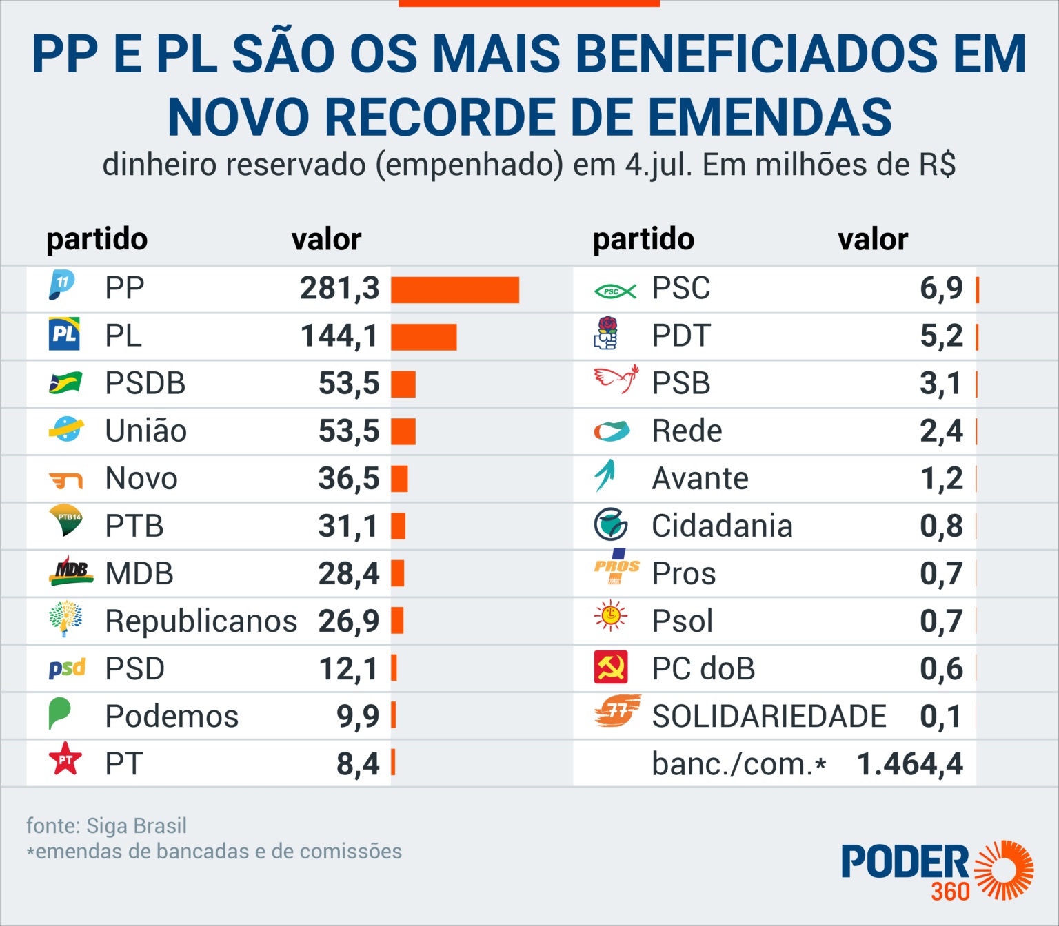 Leia abaixo o total de valores empenhados por partido: