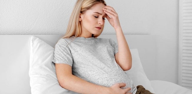 Além da pressão alta e do inchaço súbito nas mãos, nos pés e no rosto, a gestante pode desenvolver dor abdominal, alterações na visão, náuseas e dores de cabeça.