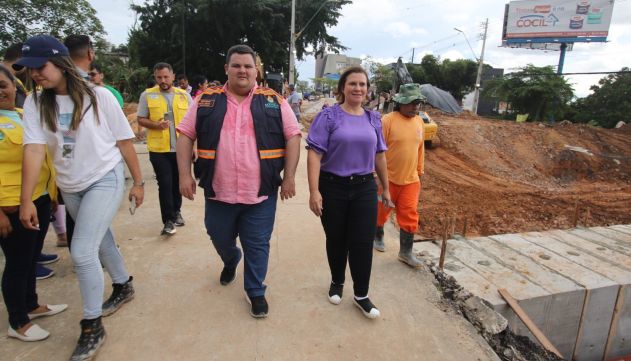 A prefeita em exercício, vereadora e vice-presidente da Câmara Municipal de Manaus (CMM), Yomara Lins, ao lado do secretário municipal de Infraestrutura (Seminf), Renato Junior, vistoriou na ultima sexta-feira, 17/2, o avanço das obras na avenida Djalma Batista. Os 120 trabalhadores da Prefeitura de Manaus, trabalham no anelamento das aduelas e iniciam a escavação da segunda linha de tubulação de ferro.