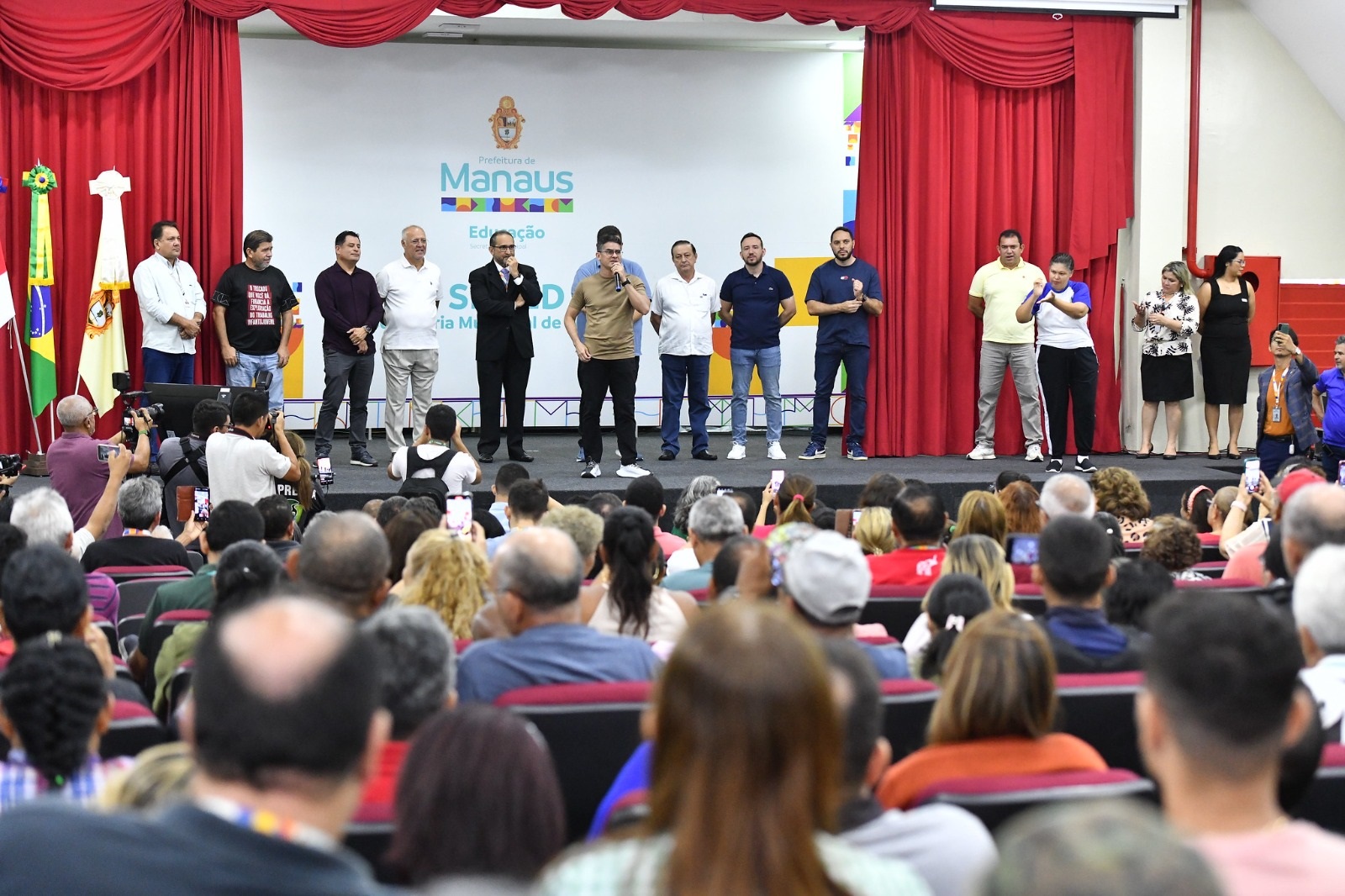 Em solenidade realizada no auditório da Secretaria Municipal de Educação (Semed), localizada no bairro Parque 10, zona Centro-Sul, o chefe do Executivo municipal fez a assinatura simbólica dos enquadramentos, que passarão a vigorar a partir do mês de julho.