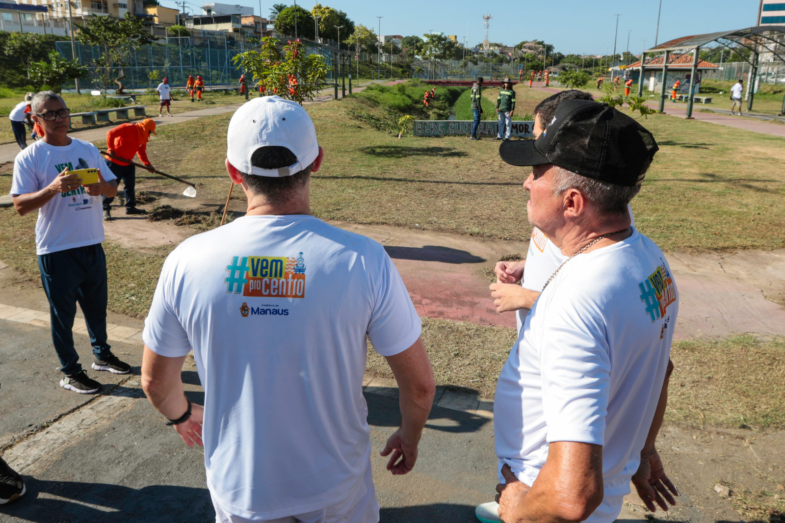 O prefeito de Manaus, David Almeida, acompanhou de perto, no domingo, 24/8, os trabalhos de capinação e limpeza no parque Desembargador Paulo Jacob, localizado na avenida Igarapé de Manaus, no centro da cidade. Ao lado do vice-prefeito Renato Júnior e do titular da Secretaria Municipal de Limpeza Urbana (Semulsp), Sabá Reis, o chefe do Executivo municipal destacou a importância de devolver os espaços públicos à população de forma digna.