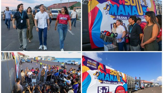 Manaus começa a viver o clima do maior festival de artes integradas da cidade. O prefeito David Almeida, acompanhado pelo diretor-presidente da Fundação Municipal de Cultura, Turismo e Eventos (ManausCult), Jender Lobato, anunciou o início da montagem da estrutura do “#Sou Manaus Passo a Paço 2025”, que este ano ocupará 63 mil metros quadrados do centro histórico, com 17 palcos e mais de 20 atrações nacionais, além de 2 mil artistas regionais.