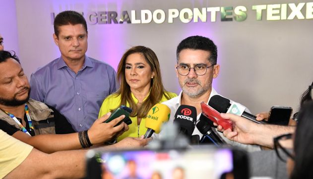 A coletiva aconteceu no auditório Isabel Victoria de Mattos Pereira do Carmo Ribeiro, na sede da Prefeitura de Manaus, no bairro Compensa, zona Oeste da cidade, e contou com a presença de vereadores, deputados e quase todos os secretários da gestão de David.