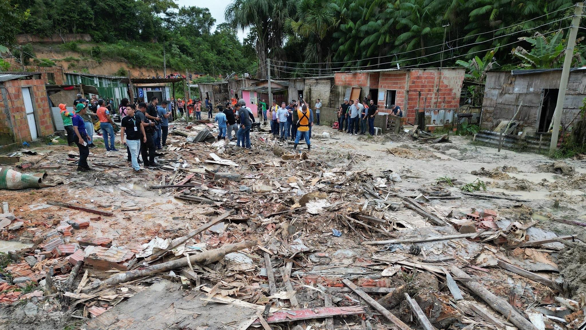O desmoronamento do barranco no Jorge Teixeira ocorreu em uma área de risco e atingiu aproximadamente 11 casas, que ficavam na parte debaixo do barranco, onde oito vítimas fatais já foram confirmadas. Para atender as mais de 70 famílias identificadas que moram na área, a Semasc realizou o cadastro para o Auxílio Aluguel e segue dando apoio a essas pessoas, em sua maioria venezuelana.