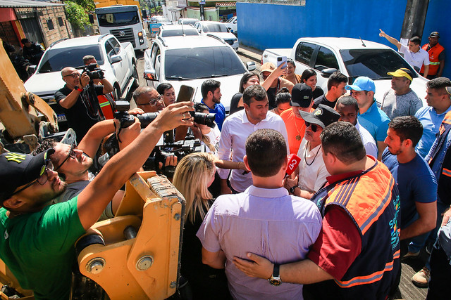 Em seguida, o prefeito acompanhou os serviços de infraestrutura realizados na rua Delfi e na avenida Curaçao, no bairro Nova Cidade, onde 32 ruas já foram recapeadas e 180 estão prestes a receber melhorias.