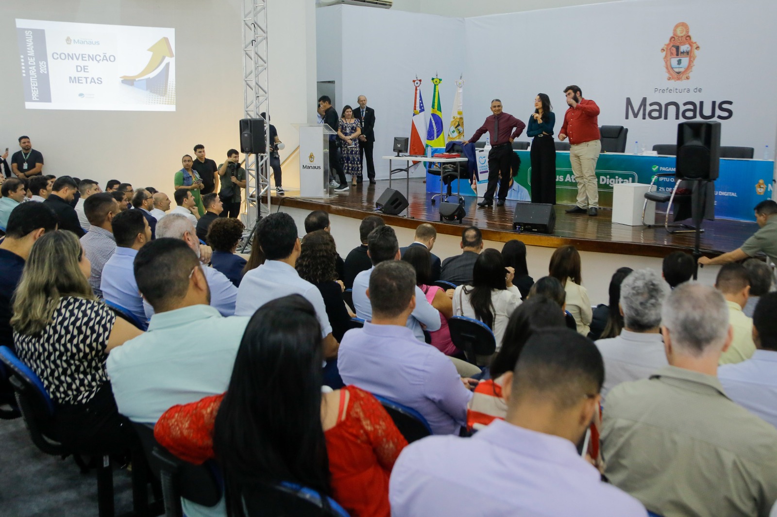 O prefeito de Manaus, David Almeida, participou, nesta terça-feira, 25/2, da 1ª Convenção de Metas para o exercício de 2025, realizada no auditório da Prefeitura de Manaus, localizado na avenida Brasil, Compensa, zona Centro-Oeste da capital. O evento reuniu secretários e gestores para definir prioridades e alinhar as ações ao programa “Manaus Cidade Global 2033”, que busca posicionar a capital entre as mais desenvolvidas do mundo.