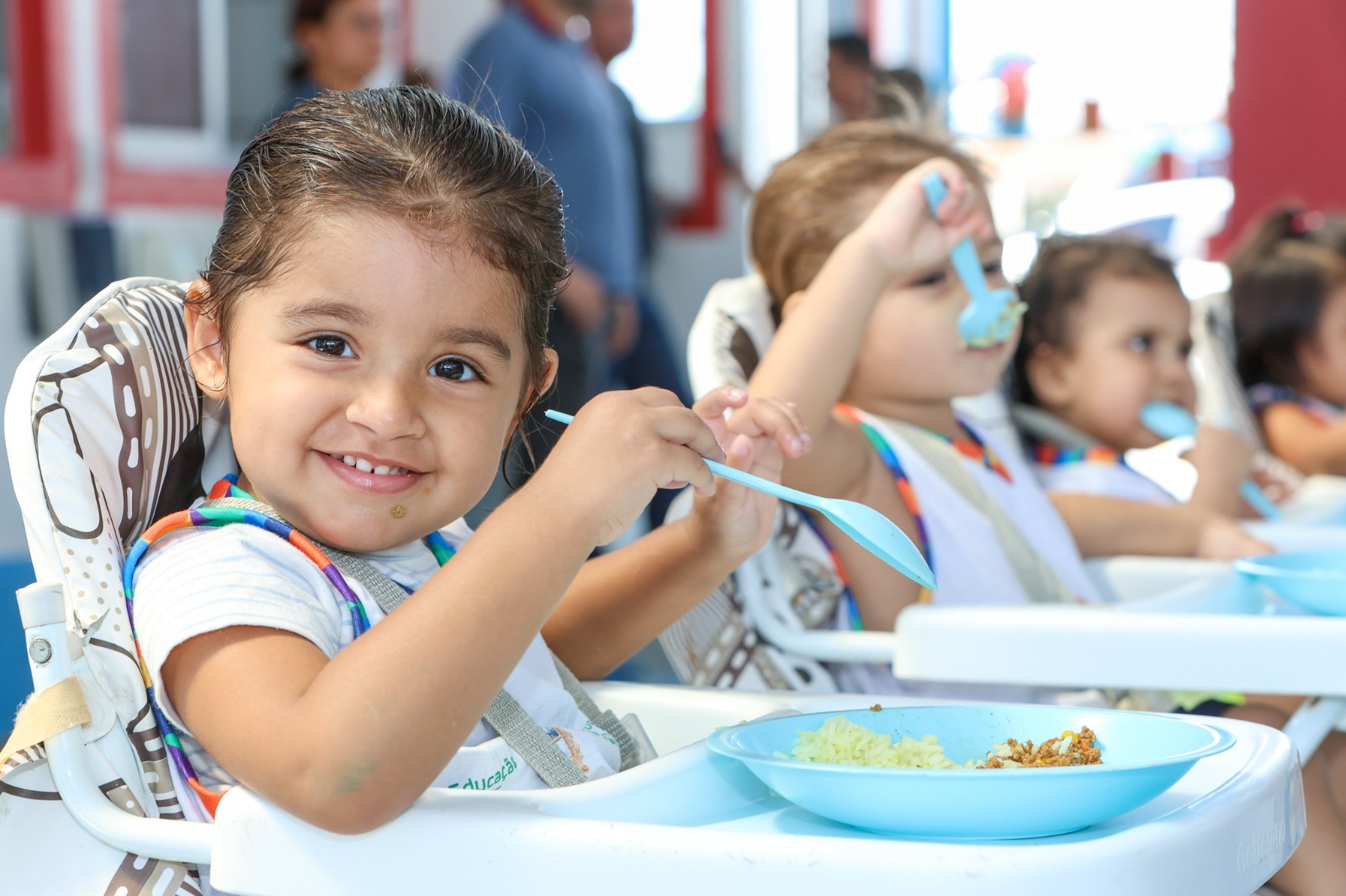 O Programa Municipal de Alimentação Escolar (PMAE) atende atualmente cerca de 250 mil estudantes distribuídos em 516 escolas, com investimento anual de aproximadamente R$ 130 milhões, grande parte destinada à agricultura familiar. Entre as inovações mais importantes está a inversão da lógica da merenda: antes os alunos recebiam três dias de refeição doce e dois de salgada; hoje, a alimentação prioriza quatro dias de refeições salgadas, com carne, peixe e frango, e apenas um de doce. O cardápio inclui sucos naturais de polpa regional e alimentos frescos, sem adição de açúcar na educação infantil, seguindo rigorosamente as diretrizes do Programa Nacional de Alimentação Escolar (PNAE).