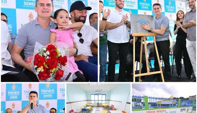 O prefeito de Manaus, David Almeida, reinaugurou, nesta sexta-feira, 16/1, a creche municipal Tude Moutinho da Costa, no bairro Cidade de Deus, zona Norte da capital. A entrega integra o conjunto de investimentos da gestão municipal na educação infantil e reforça Manaus como a capital que mais amplia vagas e estrutura para crianças de 1 a 3 anos no Norte do país.