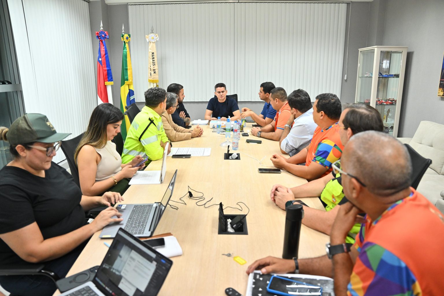 O prefeito de Manaus, David Almeida, se reuniu com o comitê de crise, no Centro de Cooperação da Cidade (CCC), para alinhar as estratégias de enfrentamento dos impactos das fortes chuvas que atingiram a cidade nas últimas horas e a atuação, de forma imediata, da Prefeitura de Manaus na assistência às famílias afetadas pelo deslizamento ocorrido na comunidade Fazendinha, no bairro Cidade Nova, Zona Norte.