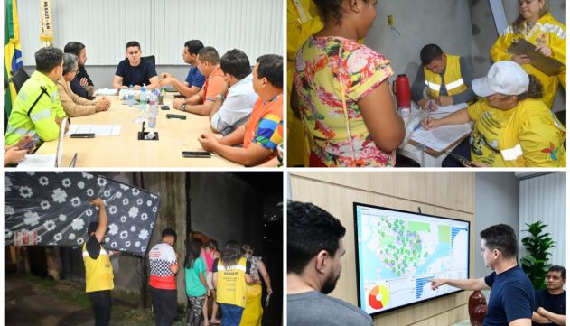 “Nas últimas horas, Manaus registrou um volume de chuva de 70,60 milímetros. Nossas equipes da Defesa Civil, Limpeza Pública, Infraestrutura e Assistência Social estão nas ruas atuando para minimizar os impactos e garantir a segurança da população. A Defesa Civil já contabilizou 72 ocorrências e segue trabalhando para dar vazão às demandas”, afirmou o prefeito, durante reunião com o comitê de crise.