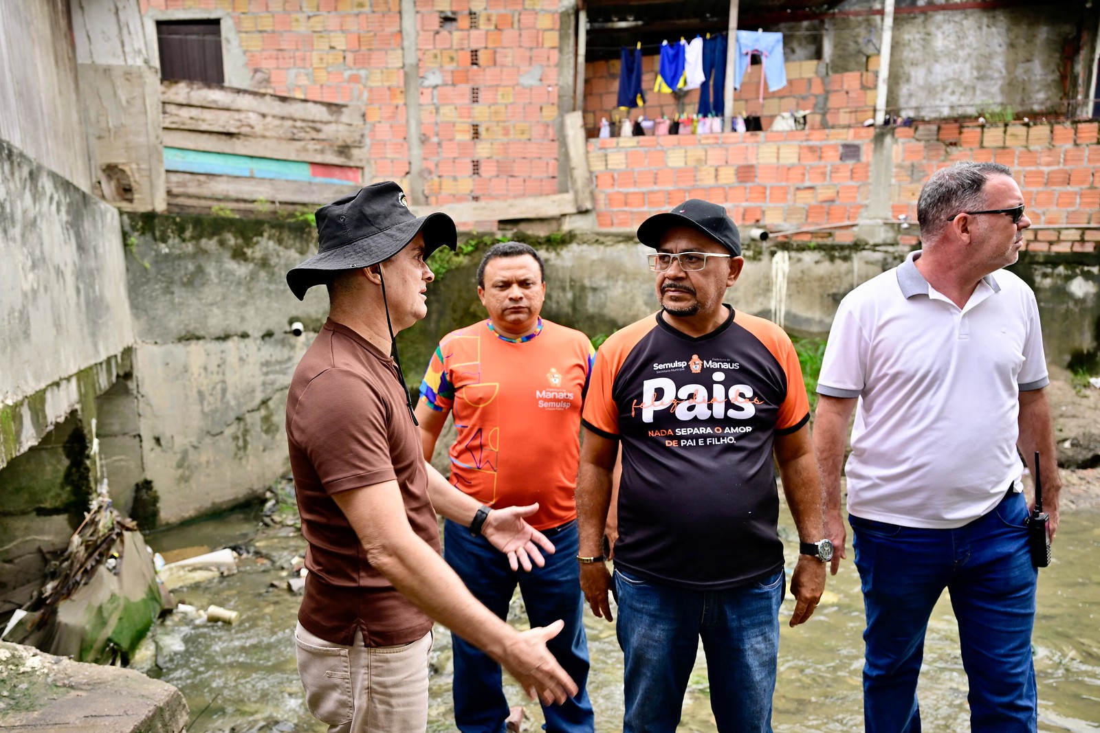 Moradores da região acompanham as ações e destacam a importância do trabalho para reduzir os impactos das chuvas. Mestre de obras e morador do local há 34 anos, Leandro Marcel da Silva agradeceu a presença do prefeito e ressaltou a necessidade de intervenções para minimizar os alagamentos.