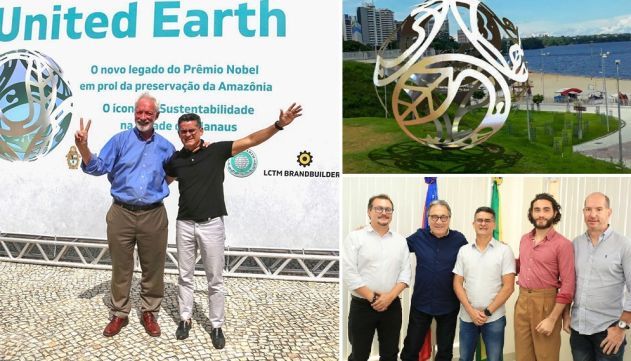 O prefeito de Manaus, David Almeida, e o presidente e diretor-executivo da United Earth, Marcus Nobel, participaram ontem, segunda-feira, 27/2, às 14h, do lançamento do projeto que vai dar à capital amazonense uma escultura do Prêmio United Earth Amazônia, um novo legado do Prêmio Nobel na cidade. O lançamento da escultura acontece no complexo turístico Ponta Negra, onde a obra será instalada.