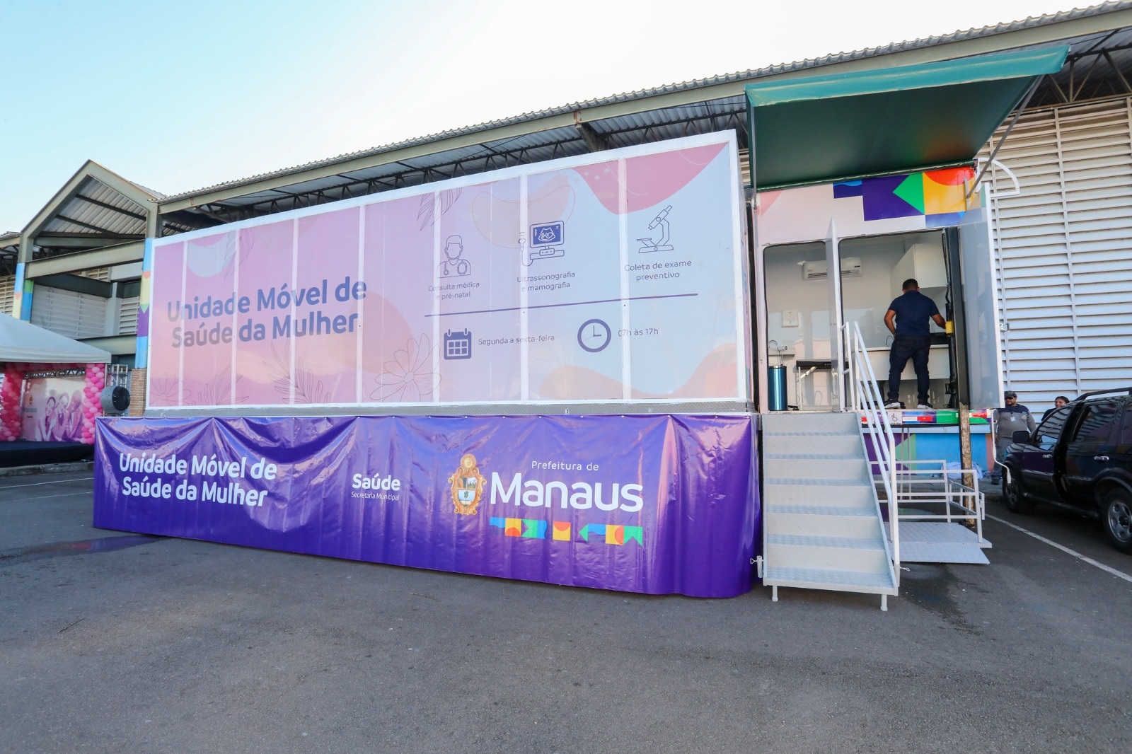 O prefeito de Manaus, David Almeida, lançou, na tarde desta segunda-feira, 24/7, o serviço móvel de saúde da mulher, na área externa do shopping Phelippe Daou, localizado na zona Norte. Inicialmente com três estruturas móveis projetadas para realizar até 17 mil procedimentos por mês, o serviço vai beneficiar a população das zonas Leste, Norte e Oeste. O atendimento, que será feito a partir de agendamento nas próprias unidades, começa nesta terça-feira, 25/7.