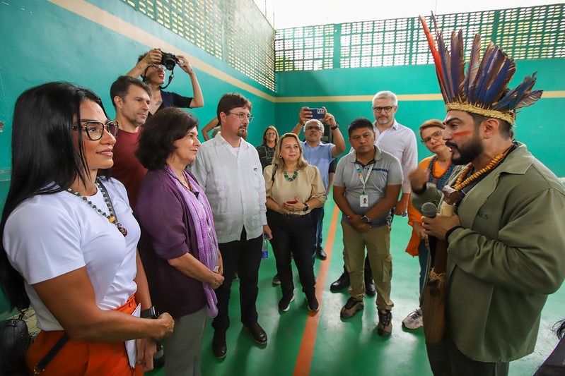 Durante a visita à comunidade, a comitiva do Ministério da Saúde teve a oportunidade de assistir a uma apresentação cultural conduzida por servidores e pela comunidade ribeirinha. Uma mostra do espetáculo “A Maloca do Conhecimento”, idealizado pelo cirurgião-dentista Elves Sá, abordou o conhecimento tradicional e a cultura dos povos originários na assistência à saúde das populações locais.