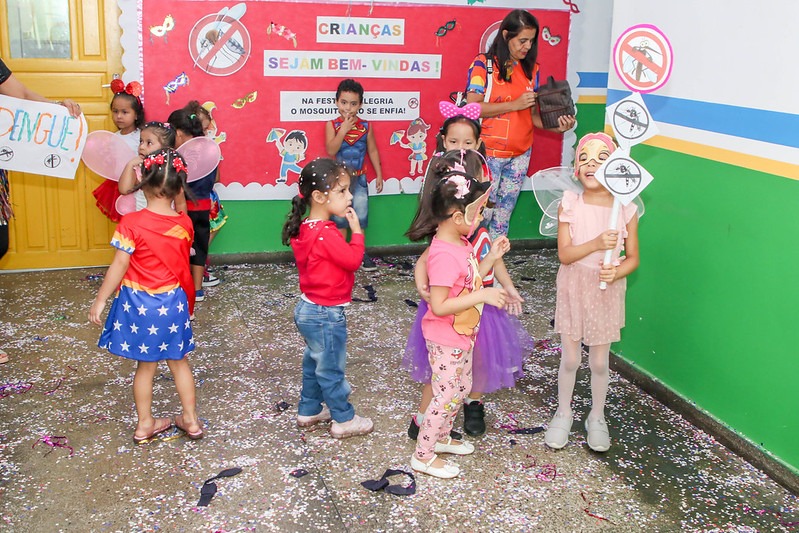 A Prefeitura de Manaus, por meio da Secretaria Municipal de Educação (Semed), realizou, nesta quinta-feira, 8/2, no Centro Municipal de Educação Infantil (Cmei) Maria do Céu Vaz D’Oliveira, localizado no Planalto, Zona Oeste da capital, um baile de Carnaval com o tema "Na festa da alegria, o mosquito não se enfia". A ação busca conscientizar as crianças, mostrando que, mesmo pequenos, podem fazer uma grande diferença no combate ao mosquito Aedes aegypti.