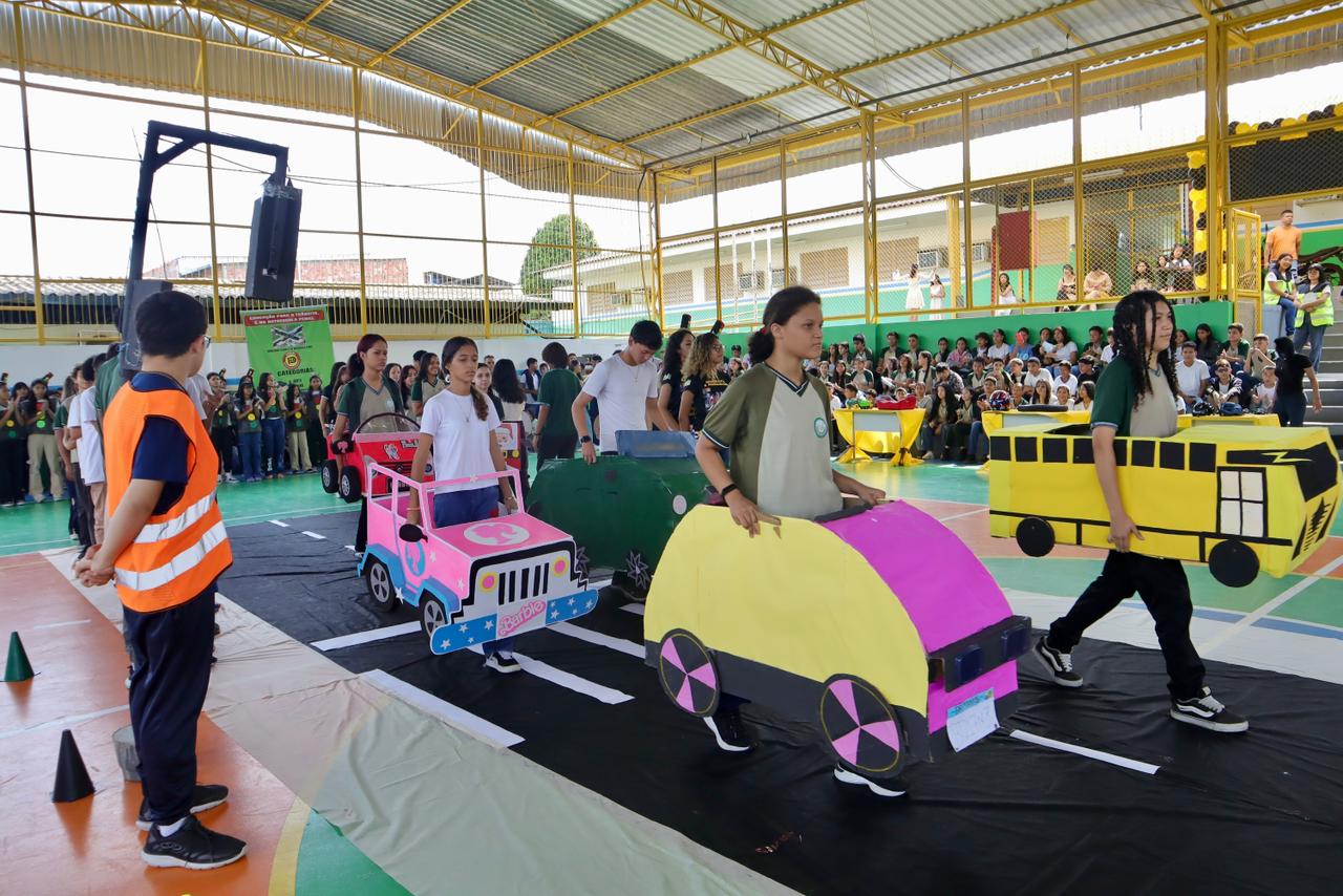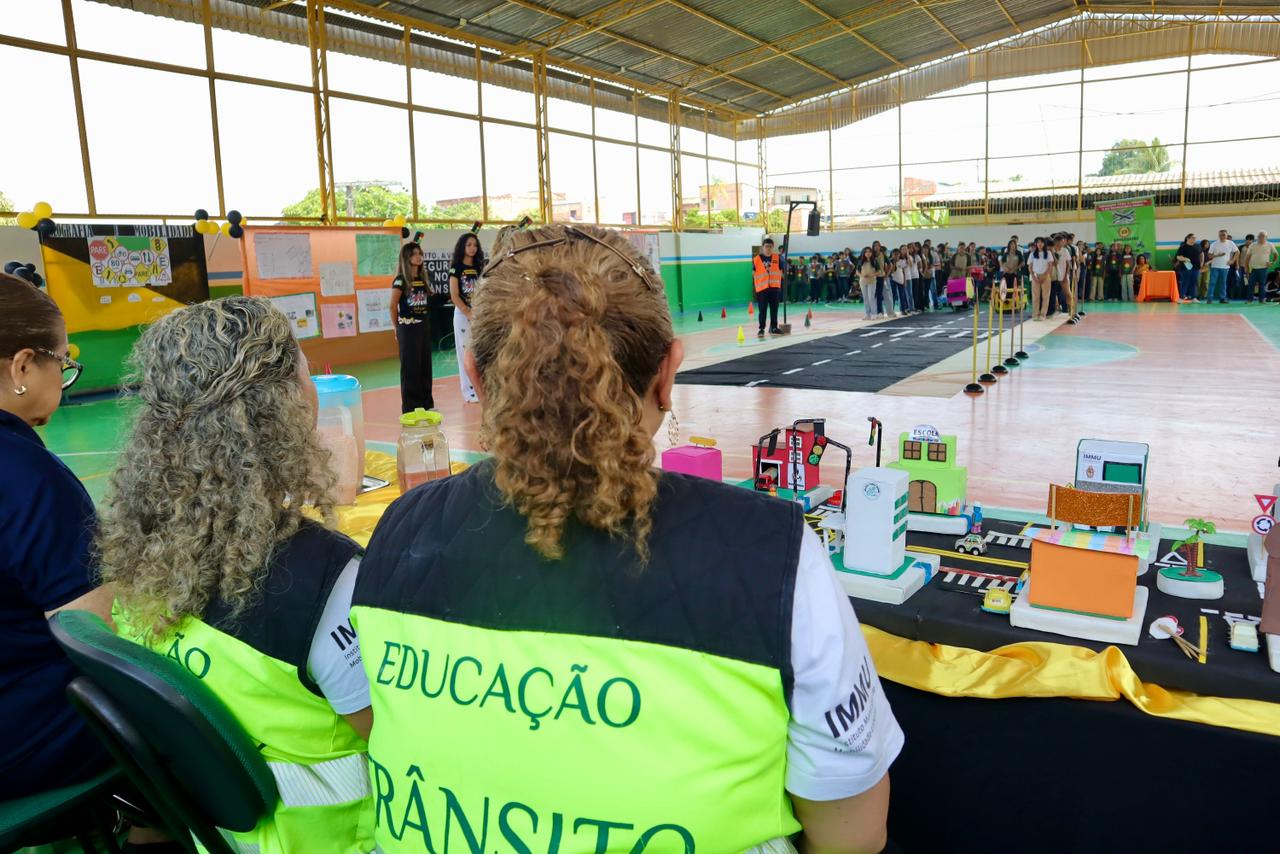 A Prefeitura de Manaus, por meio do Instituto Municipal de Mobilidade Urbana (IMMU), participou nesta terça-feira, 18/11, na escola municipal Arthur Engrácio, no bairro Nova Floresta, zona Leste, da apresentação do “Programa Ciência na Escola”, no qual alunos do 6º ao 9º ano destacaram a importância vital da educação de trânsito para a segurança da cidade.