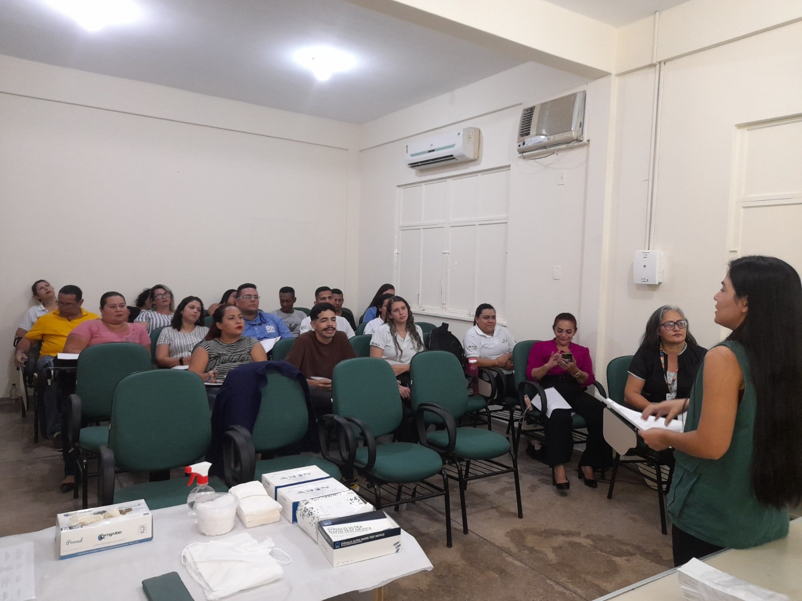 Durante o início de uma nova etapa da capacitação realizada na tarde desta segunda-feira, 28/8, no Complexo de Saúde Oeste, no bairro da Paz, zona Oeste, a responsável técnica pelas ações de controle das ISTs no Distrito de Saúde (Disa) Norte, enfermeira Stela Batista, reforçou que a capacitação também é uma oportunidade de alinhar os fluxos de atendimento e de notificação dos casos de ISTs.