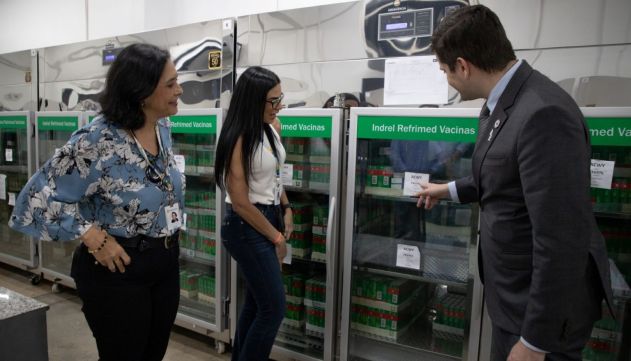 O diretor também conheceu a rede de frio do PNI local, no Distrito de Saúde Oeste, composta por 13 câmaras frias e ultrafrias, com capacidade para armazenar 1 milhão e 800 mil de doses de vacina para distribuição à rede básica de saúde do município.