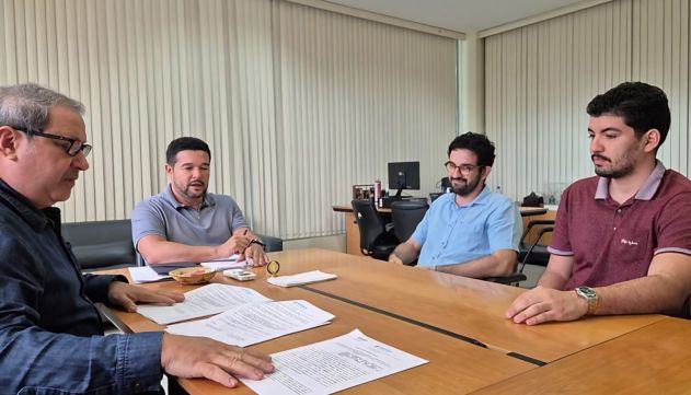 Secretário da Semmas, Fransuá Matos, reunido com equipe e representante do instituto Puxirum, durante encontro para firmar acordo de cooperação técnica para atuação na RDS do Tupé