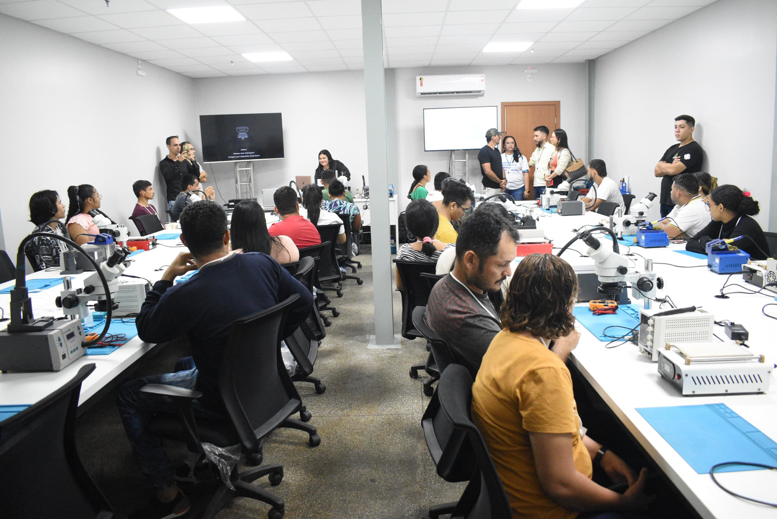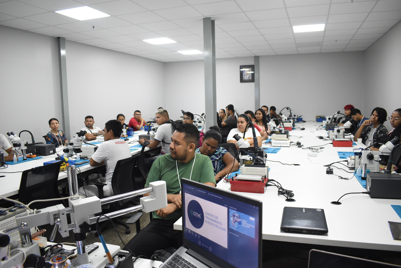 Com foco na qualificação, a Prefeitura de Manaus, por meio da Secretaria Municipal do Trabalho, Empreendedorismo e Inovação (Semtepi), iniciou, nesta segunda-feira, 13/5, as aulas das duas primeiras turmas do curso "Técnico de Celular", que acontecem no auditório da Central do Empreendedor, localizada nas dependências do shopping Phelippe Daou, bairro Cidade de Deus, zona Norte.