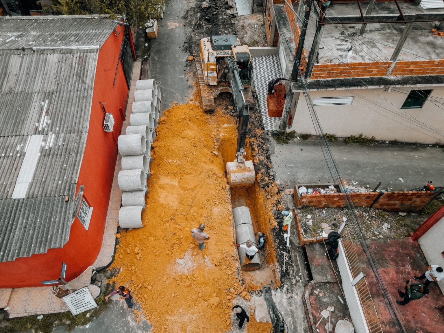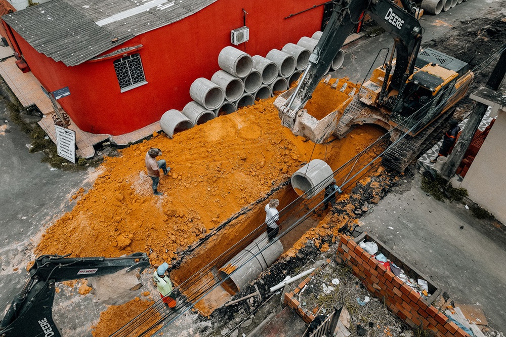 A obra é executada com o auxílio de uma retroescavadeira e uma escavadeira hidráulica que dão eficiência e celeridade aos serviços.