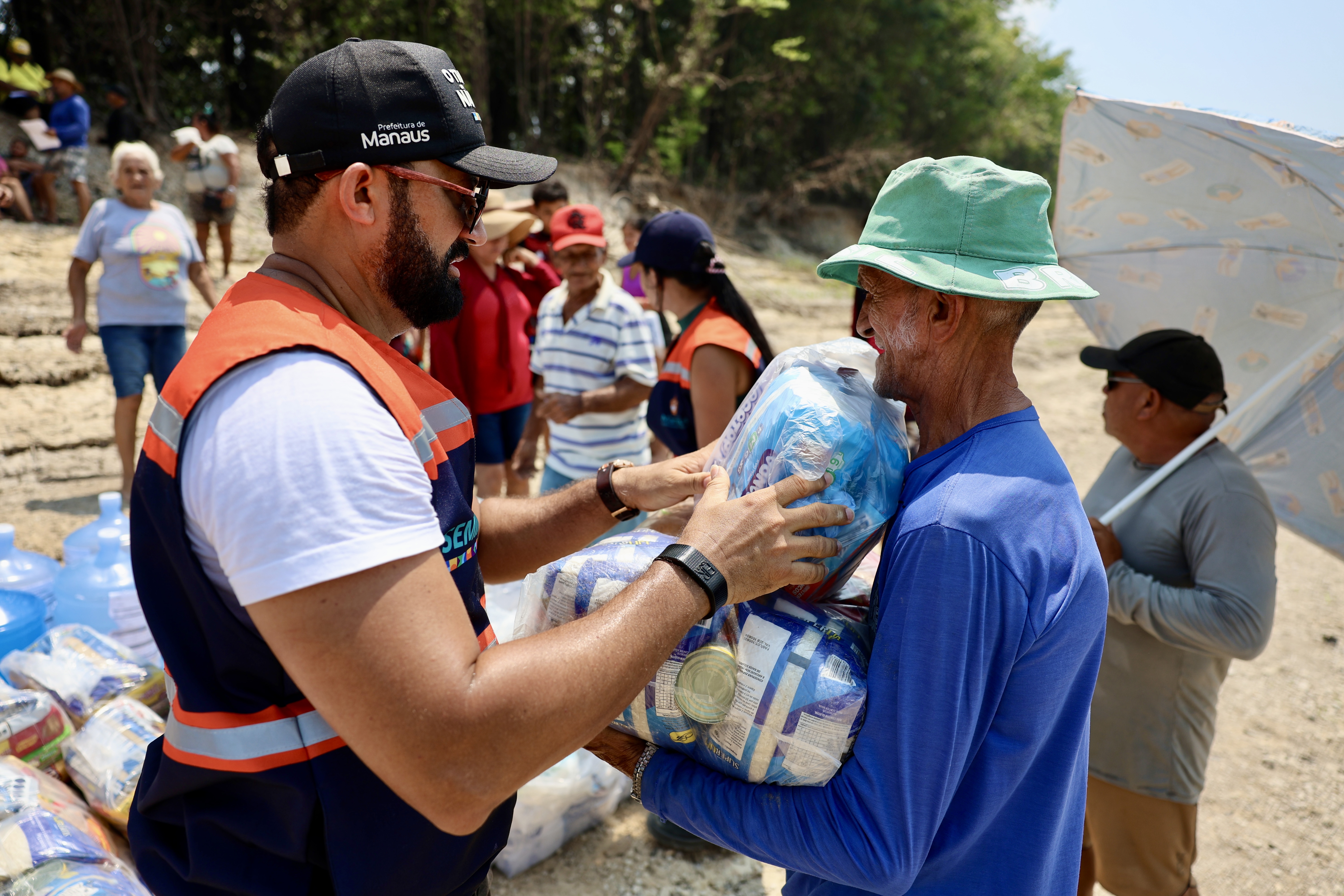 A Prefeitura de Manaus realizou, nesta segunda-feira, 11/12, a entrega de cestas básicas e água potável a 1.100 famílias residentes em comunidades localizadas na área do Tarumã-Mirim, zona Rural da capital. A ação faz parte da segunda fase da operação “Estiagem”, capitaneada pela Secretaria Municipal de Segurança Pública e Defesa Social (Semseg), por meio da Secretaria Executiva de Proteção e Defesa Civil Municipal (Sepdec).