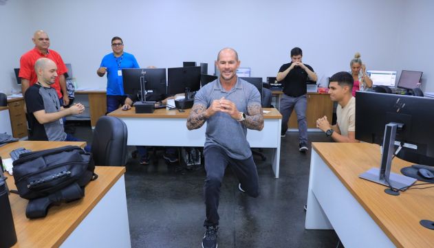 Responsável por conduzir as atividades, o educador físico Pablo Casado, 48 anos, reforça que o corpo agradece quando se rompe a rotina de longos períodos sentados. “São exercícios simples, mas que fazem diferença. Melhoram a circulação, aumentam a disposição e tornam o ambiente de trabalho mais agradável. É um cuidado que contribui diretamente para a saúde e o bem-estar de todos”, ressalta Pablo Casado.