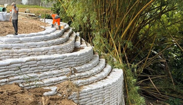 Os serviços iniciaram com a manutenção da drenagem superficial, incluindo a reconstrução de canaleta e a implantação de um novo dissipador, equipamento responsável por direcionar corretamente a água da chuva até a caixa coletora, evitando acúmulos de água e pontos de alagamento. A obra contempla ainda o anelamento da tubulação e a reconstrução da caixa coletora, assegurando maior durabilidade e eficiência ao sistema.