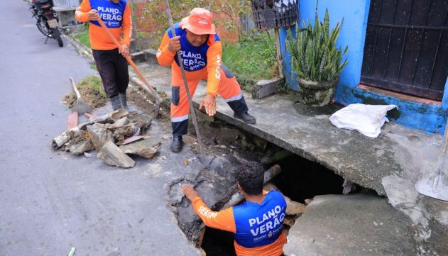 A Prefeitura de Manaus intensifica as ações preventivas de infraestrutura na zona Leste da capital. Nesta quinta-feira, 18/12, equipes da Secretaria Municipal de Infraestrutura (Seminf) executam melhorias no sistema de drenagem superficial e profunda da rua Dário Melo, no bairro Tancredo Neves, com foco na condução adequada das águas pluviais e na redução dos riscos de alagamentos.